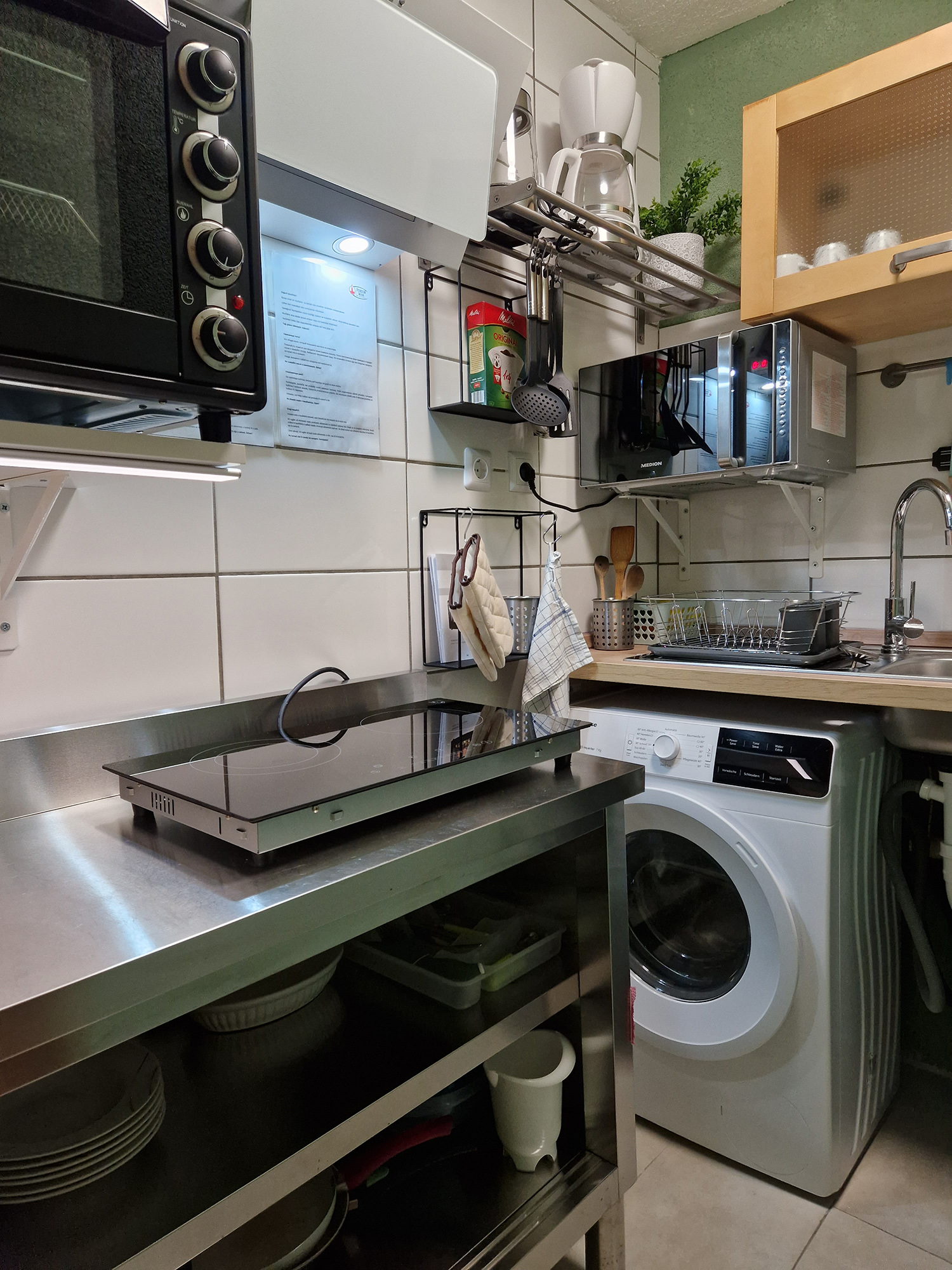 Sechs Einzelzimmer, sowie drei Doppelzimmer (Zweibettzimmer), jeweils mit eigenem Badezimmer und WC, stehen zur Verfügung. Gemeinschaftküchen befinden sich auf jeder Etage.