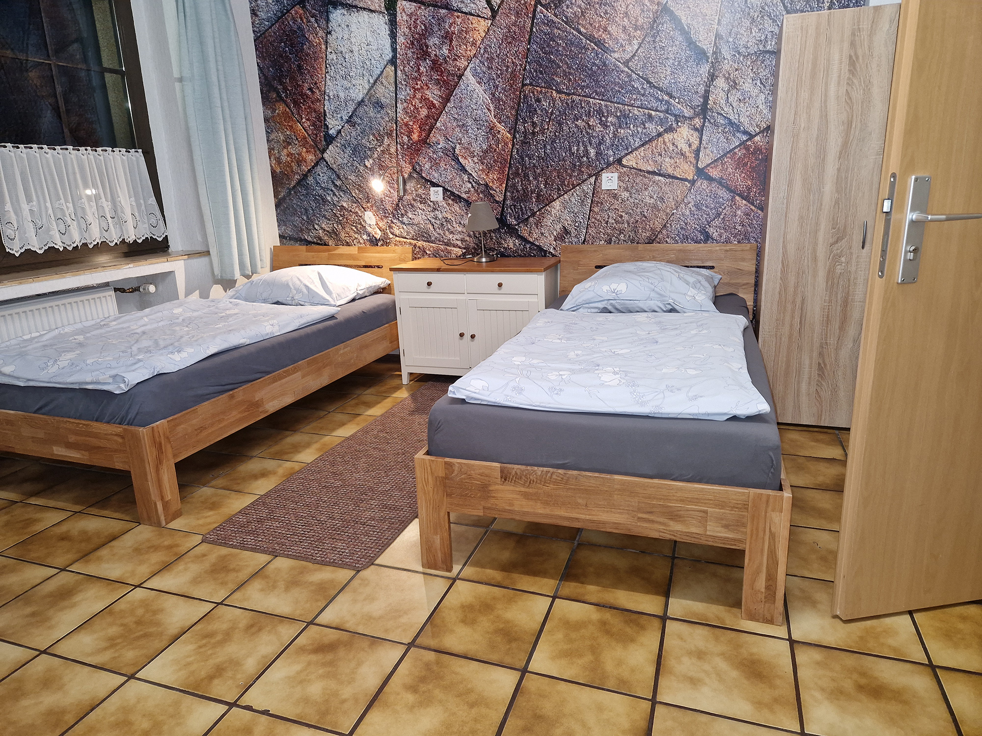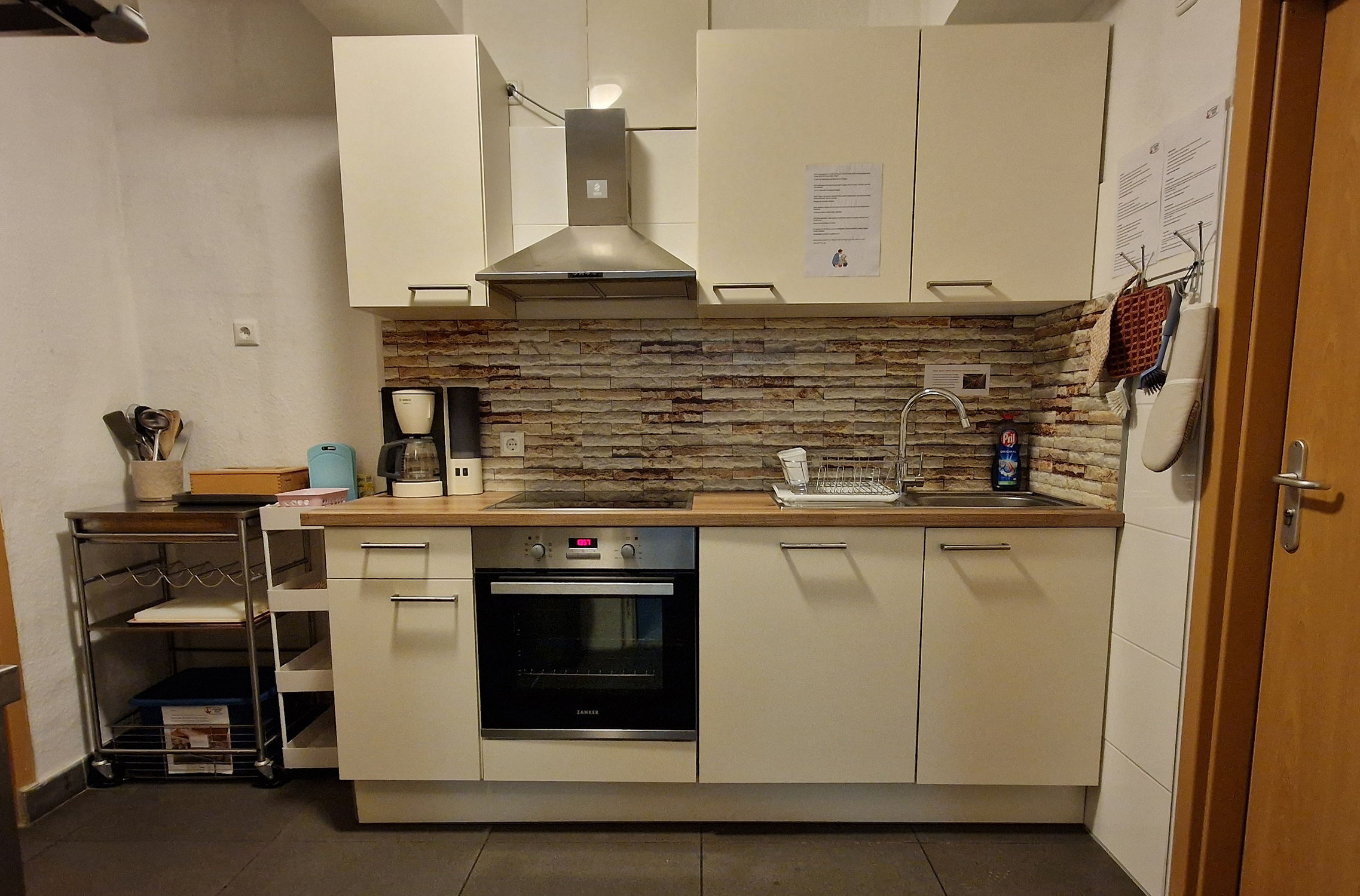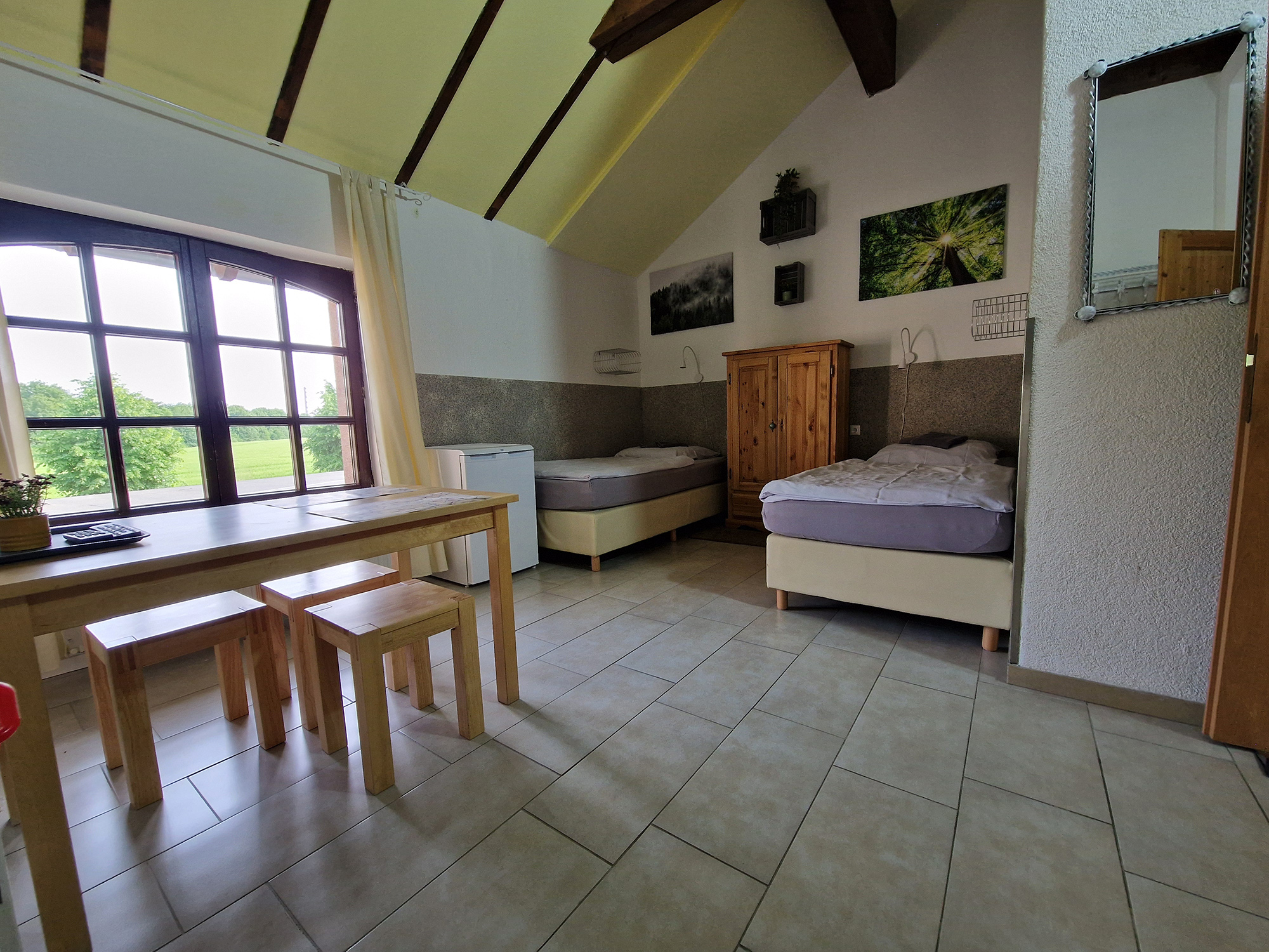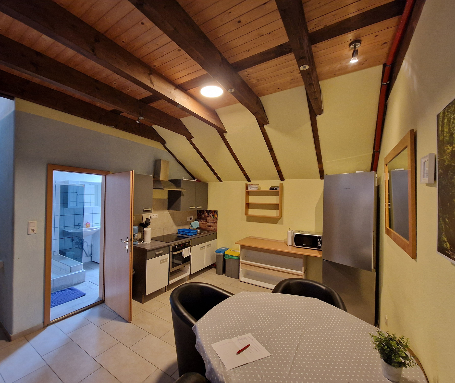Sechs Einzelzimmer, sowie drei Doppelzimmer (Zweibettzimmer), jeweils mit eigenem Badezimmer und WC, stehen zur Verfügung. Gemeinschaftküchen befinden sich auf jeder Etage.